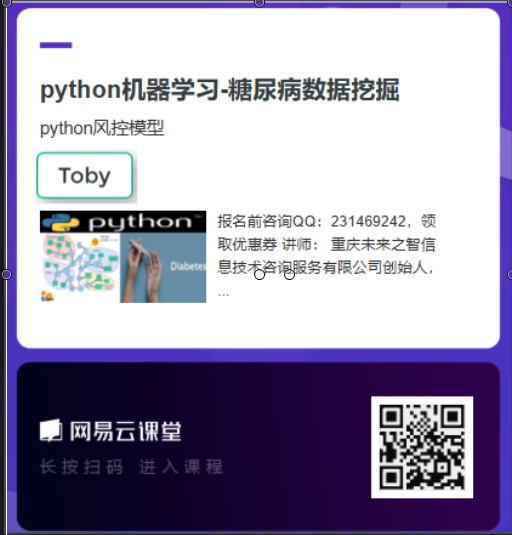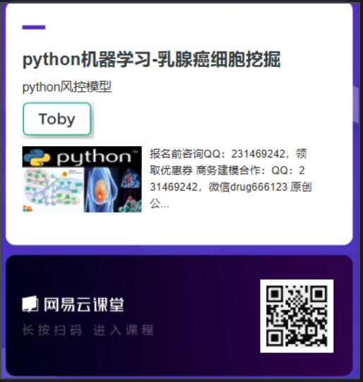 备注: 1.领课程优惠券联系微信:drug666123,QQ:231469242,手机:13500339350 2.因苹果ISO支付有高额提成,苹果iPhone手机用户请从电脑端登录,微信支付报名。我方会赠送额外2本机器学习经典电子书(市场价上) 官网链接https://study.163.com/course/courseMain.htm?courseId=1005214003&share=2&shareId=400000000398149 官方链接https://study.163.com/course/courseMain.htm?courseId=1209424869&share=2&shareId=400000000398149 官方链接:https://study.163.com/course/courseMain.htm?courseId=1210377993&share=2&shareId=400000000398149 官方链接:https://study.163.com/course/courseMain.htm?courseId=1212976813&share=2&shareId=400000000398149 官方链接https://study.163.com/course/courseMain.htm?courseId=1005269003&share=2&shareId=400000000398149 官方链接https://study.163.com/course/courseMain.htm?courseId=1210198155&share=2&shareId=400000000398149 官方链接https://study.163.com/course/courseMain.htm?courseId=1211631809&share=2&shareId=400000000398149 官方链接:https://study.163.com/course/courseMain.htm?courseId=1212360801&share=2&shareId=400000000398149 官方链接:https://study.163.com/course/courseMain.htm?courseId=1006188025&share=2&shareId=400000000398149